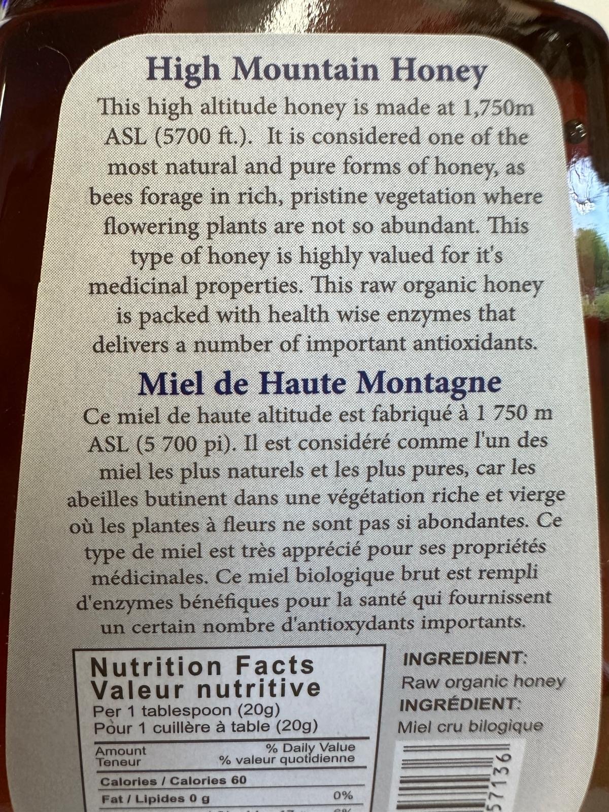 Amazing 100% raw organic honey harvested at 1,750 meters above sea level (5,500 feet).